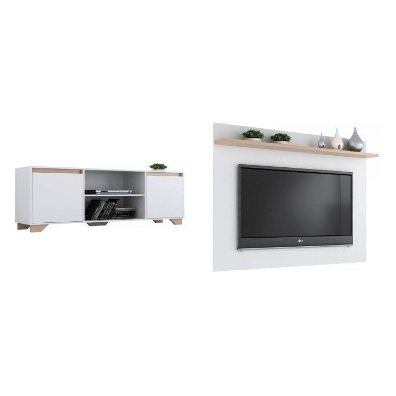 Conjunto Sala De Estar Rack 2 Portas Com Painel Para Tv Até 42 Polegadas Benevello Branco/siena.