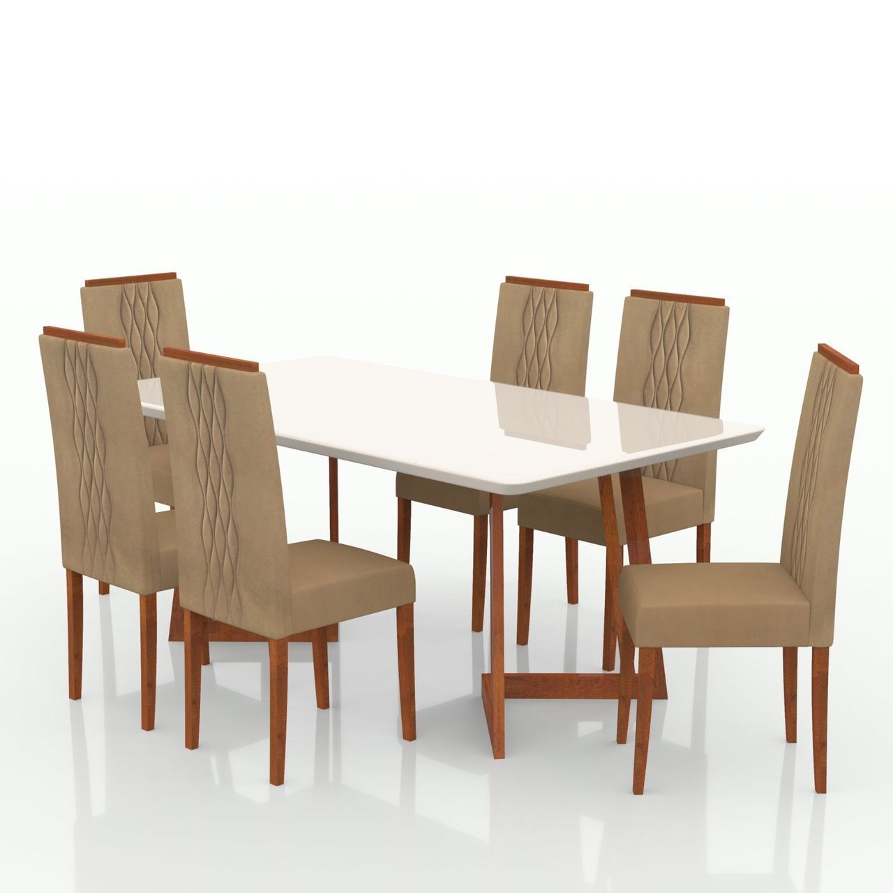 Estilo: Moderno | Formato: Retangular | Garantia: 03 Meses | Altura (cm): 78 | Largura (cm): 90 | Cor Da Base: Marrom | Cor Do Tampo: Branco | Peso Da Mesa: 50 | Cor Secundária: Marrom | Design Da Base: Tripé | Mesa Extensível: Não | Profundidade (cm): 160 | Cor Das Cadeiras: Marrom | Escala De Brilho: Brilhante | Formato Do Tampo: Retangular | Mesa Suporta Até: 100 | Serviço Montagem: 114259443 | Material Do Tampo: Vidro/mdf | Origem Do Produto: Nacional | Acabamento Da Mesa: Pintura Uv | Ambiente Principal: Sala De Jantar | Espessura Do Tampo (mm): 25 | Almofada Do Assento: Fixa | Estrutura Do Assento: Espuma | Estrutura Do Encosto: Espuma | De Canto (canto Alemão): Não | Enchimento Do Assento: Espuma D-23 | Enchimento Do Encosto: Espuma | Peso Da Cadeira/banco: 8.8 | Quantidade De Lugares: 6 | Cadeira/banco Estofada: Encosto E Assento Estofados | Quantidade De Cadeiras: 6 | Material Da Base Da Mesa: Madeira Maciça | Possui Apoio Para Braços: Não | Possui Apoio Para Os Pés: Não | Possui Suporte Giratório: Não | Cadeira/banco Suporta Até: 150 | Acabamento Da Cadeira/banco: Pintura Uv | Revestimento Da Cadeira/banco: Veludo | Material Da Estrutura Da Cadeira: Madeira Maciça | Tipo De Madeira Maciça Da Base Da Mesa: Eucalipto | Fabricante: Móveis Meneghetti | Marca: Móveis Meneghetti | Cor: Caramelo/chocolate | Cor Do Produto: Caramelo/chocolate | Itens Inclusos: 1 Mesa Com 6 Cadeiras, Kit Ferragens E Manual De Montagem. | Cor Predominante: Marrom | Medida Da Mesa (a X L X P): 78 X 90 X 160cm | Medida Do Tampo (l X C X E): 90 X 160 X 2,9cm | Medida Da Cadeira/banco (a X L X P): 100 X 43 X 55cm