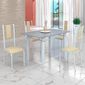 Conjunto Sala De Jantar Bahia Mesa Tubo 120x75cm Tampo Pedra Granito Ocre Com 4 Cadeiras Creme/branco.