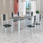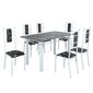 Conjunto Sala De Jantar Bahia Mesa Tubo 140x75cm Tampo Pedra Granito Topázio Com 6 Cadeiras Branco/preto Floral.
