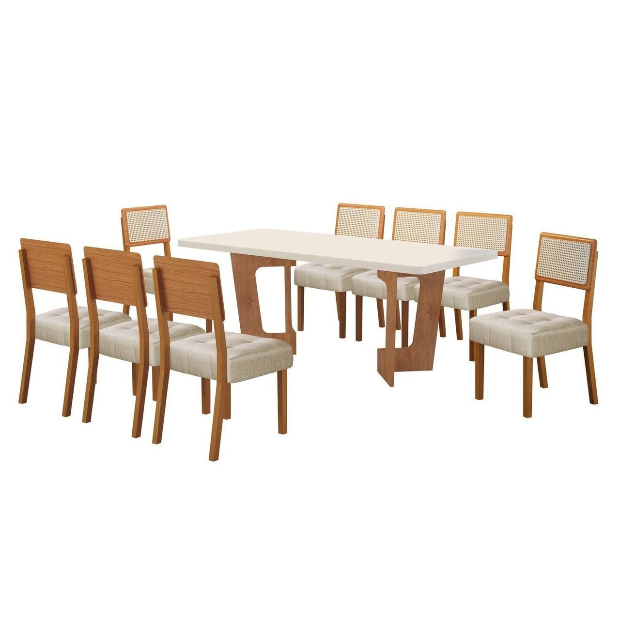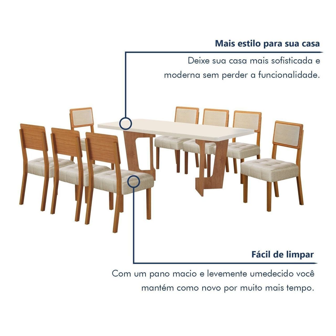 Conjunto Sala De Jantar Mesa 180cm Com 8 Cadeiras Liz Bege/cinamomo.