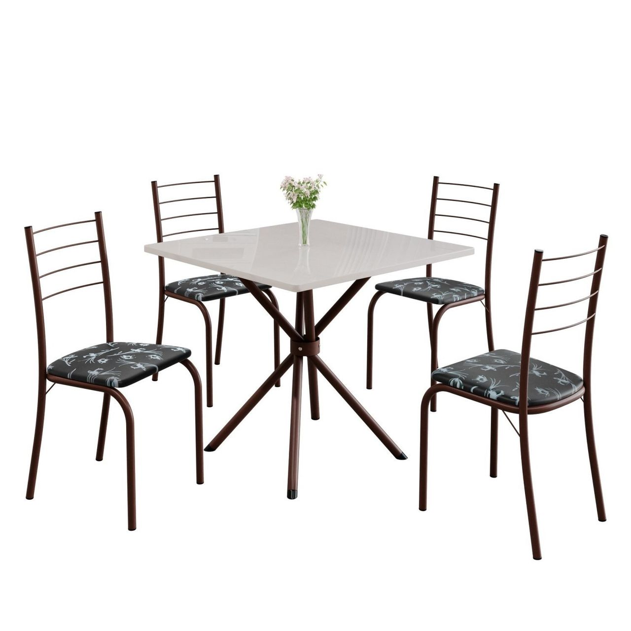 Conjunto Sala De Jantar Mesa Quadrada 70x70cm Tampo Madeira Mdp 4 Cadeiras Rio Preto Floral / Marrom.