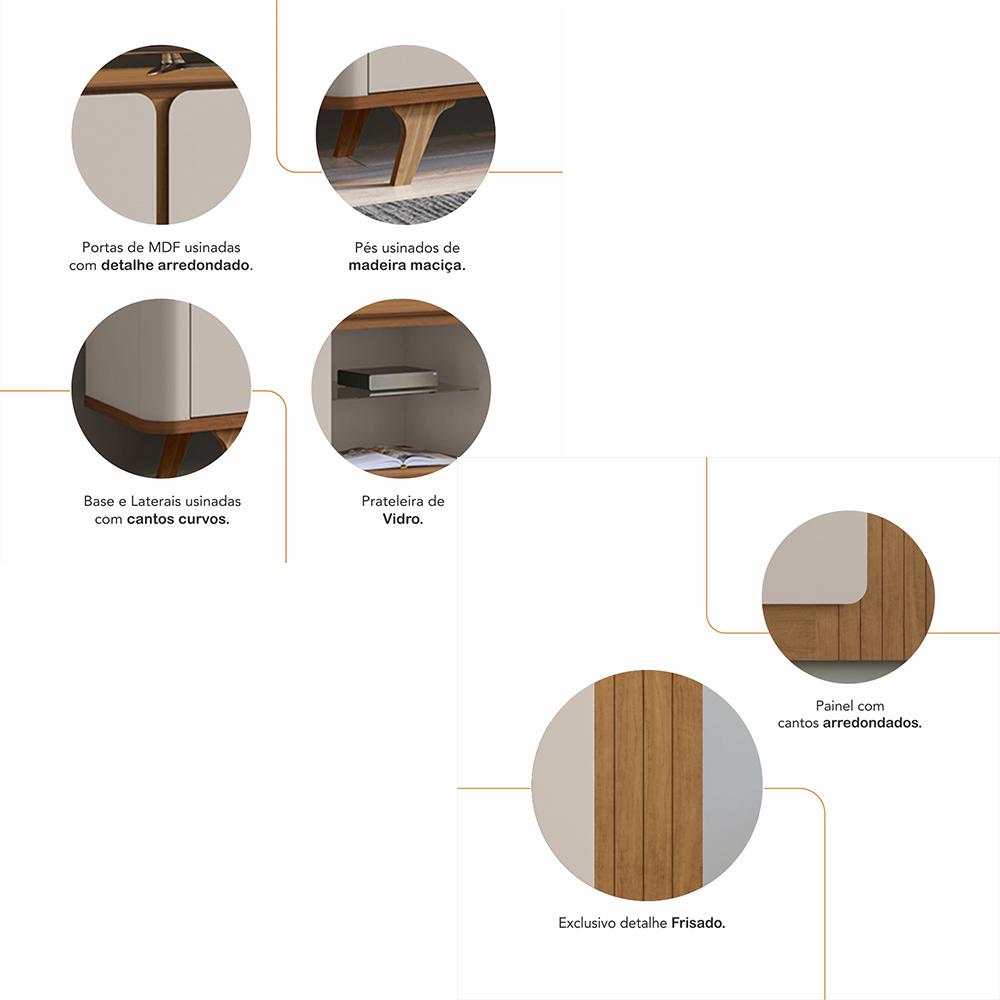Conjunto Sala Rack E Painel Roma Para Tv Até 60 Polegadas Cedro/off White