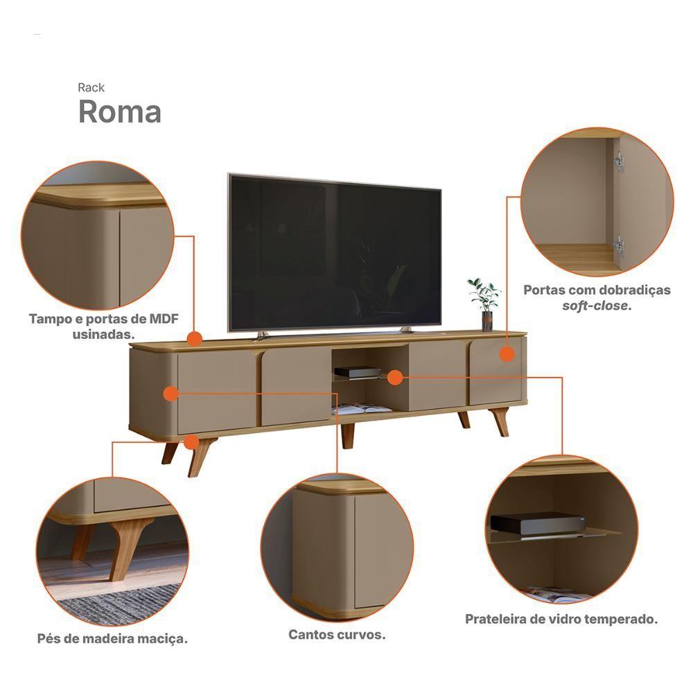 Este conjunto de rack e painel é o complemento perfeito para sua sala. Com prateleiras espaçosas e um design elegante, este móvel é perfeito para organizar seus objetos e aparelhos eletrônicos. Adicione um toque de sofisticação à sua sala com este conjunto de Rack e Painel Roma.