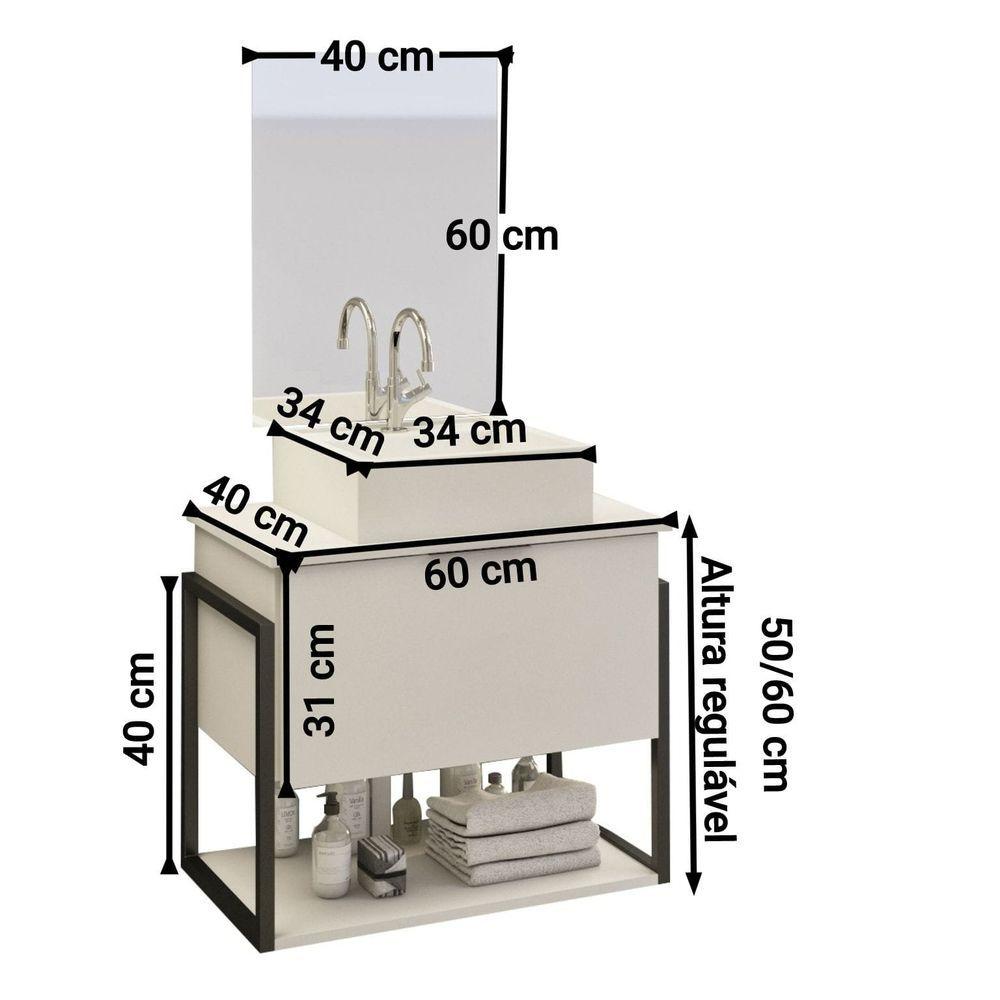 Conjunto Tech 60cm Branco Inteiro - Cuba Brancakit Banheiro Estilo Industrial Completo 60cmgabinete Madeira + Ferragens Pretas + Cuba + Espelhomodelo: Tech 60acompanha: Gabinete + Cuba Elevada + Espelhomodelo Moderno, Com Puxador De Alumínio E Ferragens Pretasmedidas Gabinete: 60cm X 40cm X 50/60(comp. / Prof. / Altura)medidas Da Pia Sobrepor : 34x34x11medidas Espelho: 60cm X 40cm-madeira Tipo Mdf/mdp: (usamos Um Mix Desses Materiais)-mdf É Melhor Para Cortes De Encaixe E Acabamento Estrutural E Mdp É Mais Resistentea Umidade-cuba De Mármore Sintético (cerâmica Tipo De Vaso Sanitário)-gabinete Com Porta Basculante.diferenciais:modelo Moderno Com Ferragens Pretas Laterais, Estilo Industrial.modelo Bem Versátil, Pois A Porta Basculantes Do Gabinete Permitem Instalaçãoem Encanamentos Vindos Da Parede Ou Do Chão. Espelho Fixado Com Botão Francês (acompanha O Produto). As Ferragens Podem Ser Fixadas Mais Para Cima Ou Para Baixo Se Adequando Melhor A Necessidade Do Seu Encanamento.fabricação Própria.obs: Não Acompanha Torneira E Itens Hidraulicos(recomendamos Torneira 7/8 Baixa De Bancada E Valula De 7/8 De 30mm)características Gerais Do Produto:- Material: Gabinete (mdf / Mdp) - Estrutura Em Ferro Com Pintura Eletrostática- Medida Do Gabinete: 60cm X 40cm X 50 (comp. / Prof. / Altura)- Modelo: Tech 60cm- Medida Da Espelheira: 60 X 40 X 03 (larg / Alt. / Prof.)- Medidas Da Pia: 34x34x11 (compr. / Larg. / Altura)- Observações:: Gabinete Vai Montado, Só Precisa Ficar Ferragens Nas Laterais Na Altura Desejada E Prateleira- Material Da Cuba: Cerâmica (mármore Sintético)acompanha O Produto:- 01 - Gabinete Mdf/mdp01 - Cuba 01 - Espelho (com Botão Frances)01 - Par Ferragens Pretas01 - Prateleira Madeiragarantia:- Fabrica 3 Meses