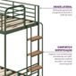 Conjunto Treliche Infantil /juvenil Teko Casatema Verde /álamo. O Treliche Teko Une O Melhor Do Design Industrial Com Um Toque Retrô, Oferecendo Funcionalidade, Conforto E Máxima Segurança. Sua Estrutura Metálica De Alta Resistência Conta Com Cabeceiras Em Tubos Arredondados E Degraus Com Acabamento Amadeirado, Agregando Sofisticação E Durabilidade. A Cama Auxiliar Embutida, Com Rodízios De Plástico E Estrutura Reforçada, Garante Movimentação Suave, Suporte Seguro (até 80 Kg) E Praticidade Para Acomodar Mais Pessoas Com Conforto. Ideal Para Quem Busca Otimizar Espaços Sem Abrir Mão De Estilo, O Treliche Teko É Perfeito Para Quartos Modernos, Compactos E Cheios De Personalidade.
