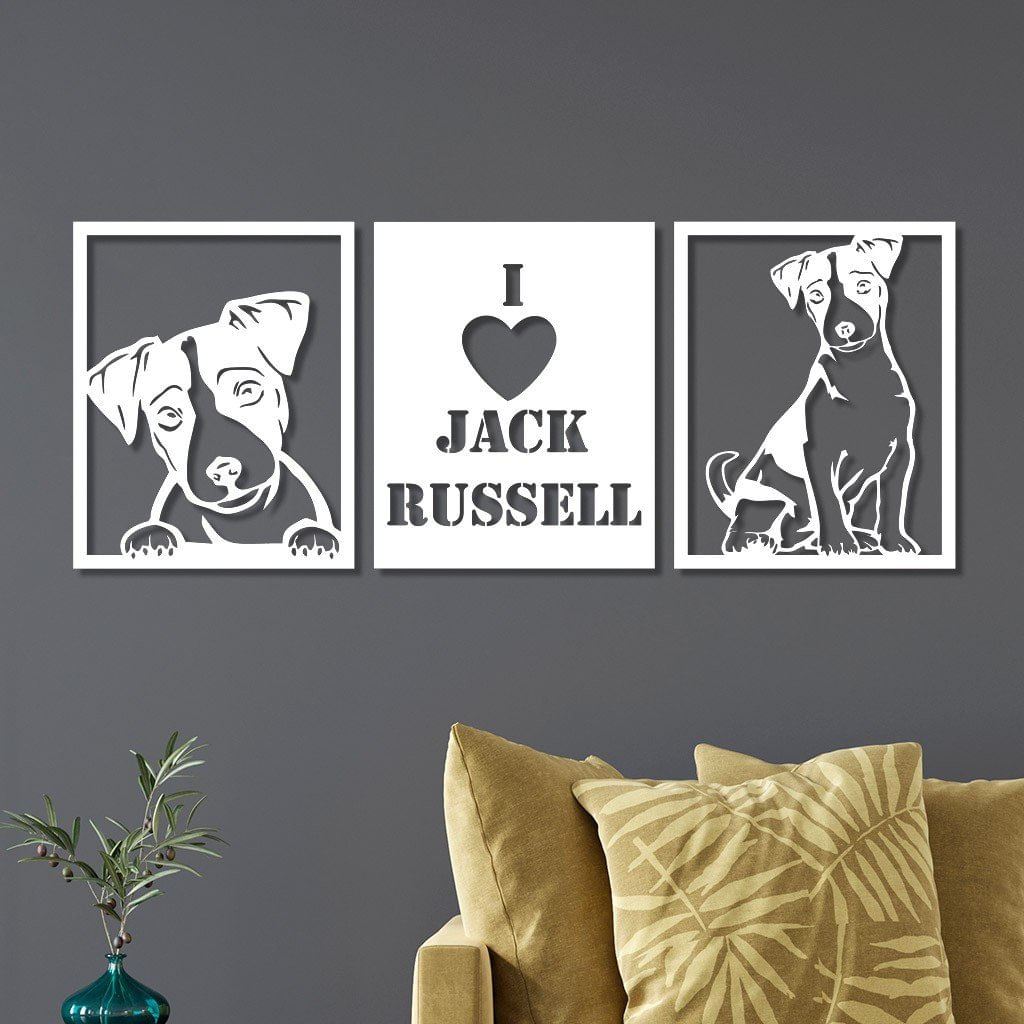 Conjunto 3 Quadros Em Mdf Jack Russell 1 Com Moldura Branco - 40cm X 50cm -