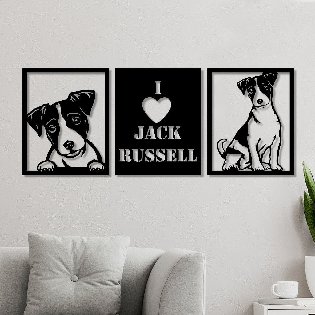 Conjunto 3 Quadros Em Mdf Jack Russell 1 Com Moldura Preto - 40cm X 50cm -