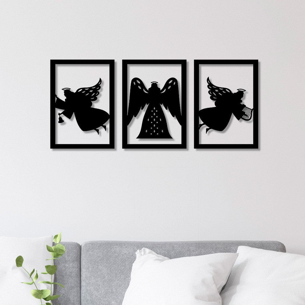Conjunto 3 Quadros Vazados Em Mdf Anjos