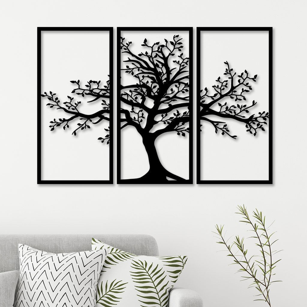 Conjunto 3 Quadros Vazados Em Mdf Árvore Da Vida Preto - 40cm X 80cm -