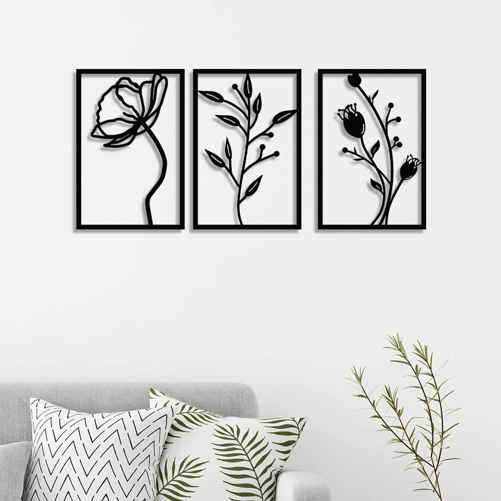 Conjunto 3 Quadros Vazados Em Mdf Flores Preto - 27cm X 40cm - características Gerais Do Produto: Dimensões: 27cm X 40cm, 40cm X 60cm Cor Da Peça: Preto / Branco Espessura: 6mm Material: Mdf Laminado Acompanha: Fita Dupla Face garantia: 7 Dias