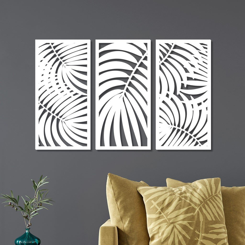 Conjunto 3 Quadros Vazados Em Mdf Folhagens