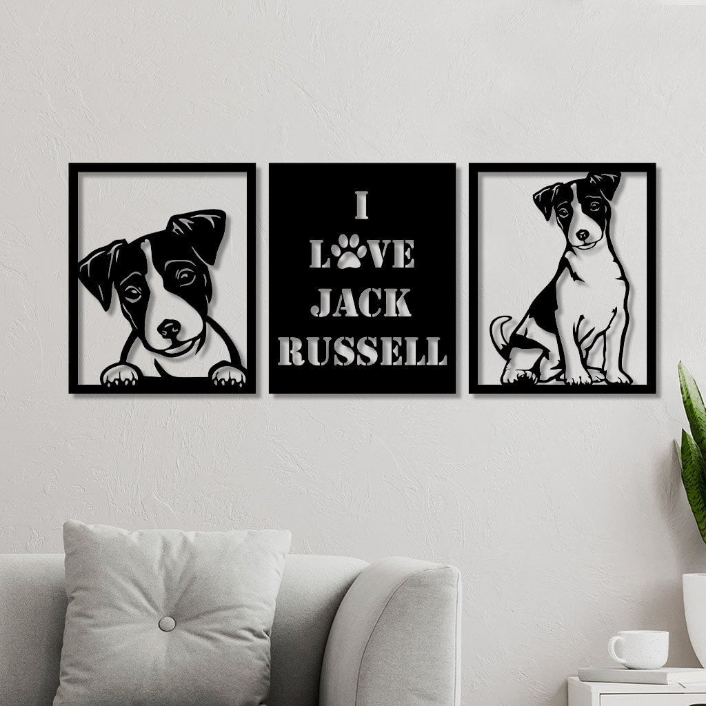 Conjunto 3 Quadros Vazados Em Mdf Jack Russel Com Moldura