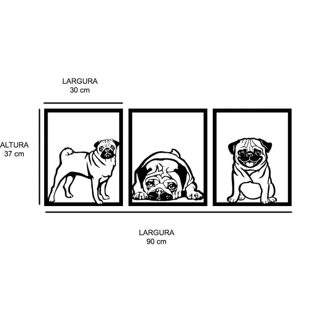 Conjunto 3 Quadro Vazado Em Mdf Pug Com Moldura Branco - 30cm X 37cm -
