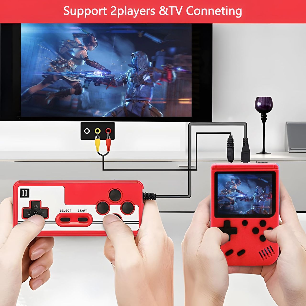 - Suporte Para 2 Jogadores E Suporta Conexão De Tv: Você Pode Conectar O Console De Jogos Portátil Retrô Com Tela De 3 Polegadas À Tv, Através Do Cabo De Plástico Abs Seguro E Não Tóxico E Cabo De Dados Av De 118 Polegadas, Para Que Você Possa Desfrutar Facilmente De Videogames Animados E Emocionantes Na Tela Grande Da Tv. Observação: O Sinal Do Jogo Só Pode Ser Selecionado Entre O Console De Jogos E A Tv! Aproveite O Tempo De Entretenimento Da Sua Família
