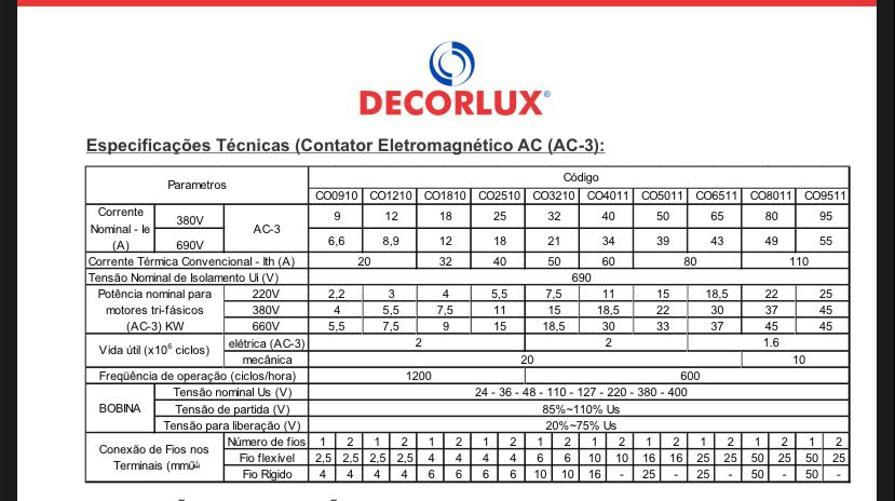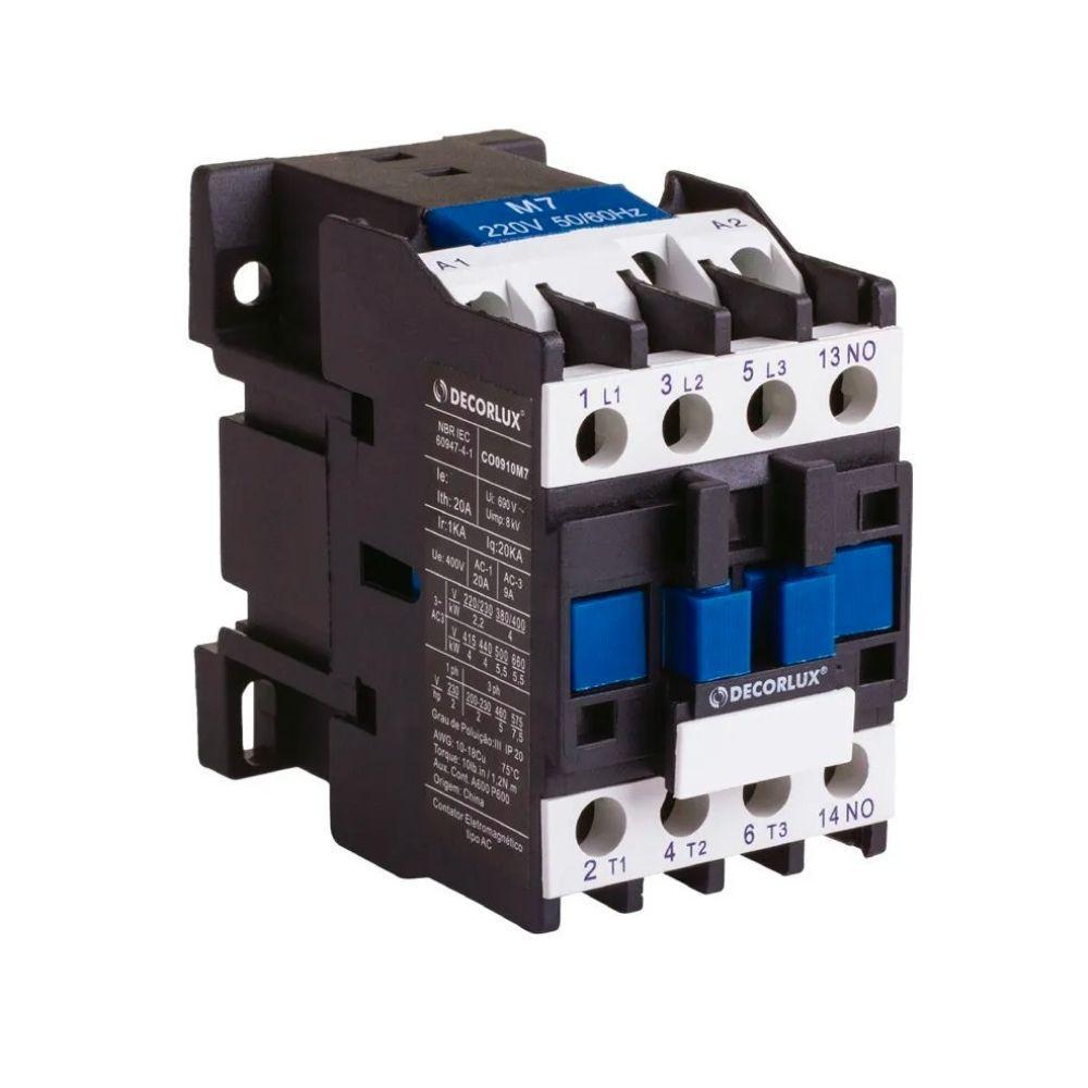 Contator Eletromagnetico Plastico Tipo Ac 9a 220v Decorlux O Contador Ac Decorlux, É Indicado Para Circuitos Ac 50/60 Hz, Tensão De Até 690v E Corrente De Trabalho Nominal Até 95a