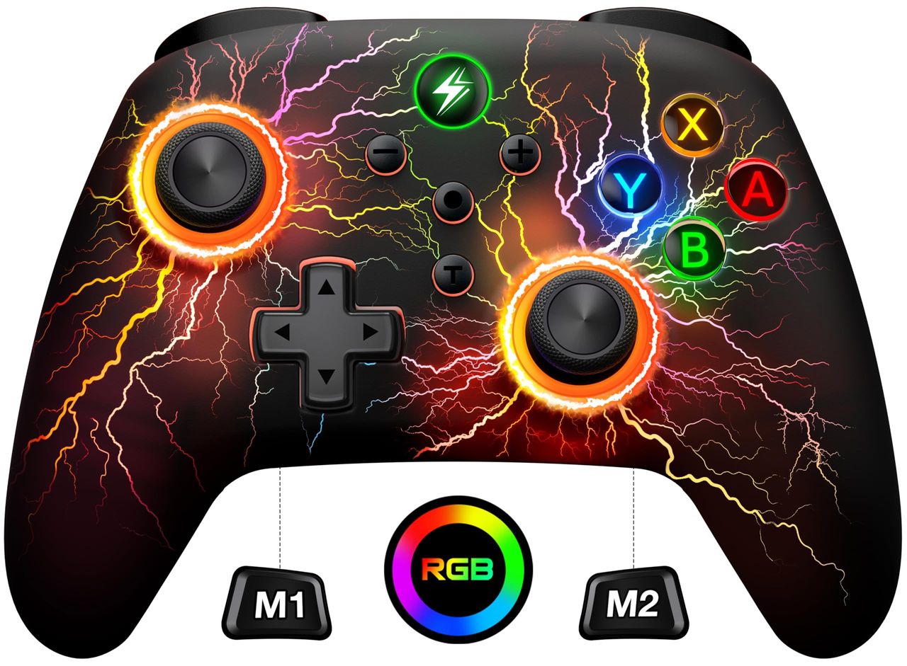 - 🎮【cool Lights Switch Controller】o Controlador Led Light Switch Pro Forma Uma Atmosfera Interessante De Iluminação De Jogo. 6 Modos De Led Diferentes: Modo Colorido, Respirando Colorido, Led Sólido De 7 Cores/led De Respiração De 7 Cores/led Piscante/led Apagado. A Função De Memória Passará Para O Último Modo De Led. E Você Também Pode Ajustar O Brilho Do Led. (não Suporta A Função Nfc)