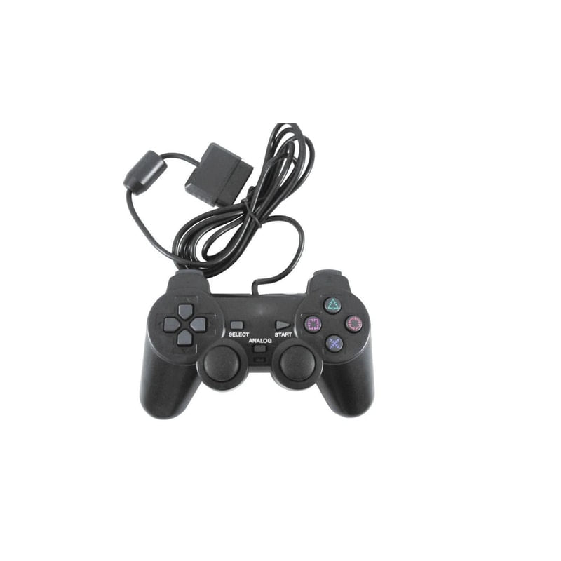 Controle PS2 KP-2121/S..Características:.- Compatível com PS1 EPS2,.- Ergonômico e confortável,.- 12 botões de função,.- Controles Digital e Analógico,.- Dois motores de vibração,.- Conector PSX,.- Instalação Plug and Play..- Material: Termoplástico, metais e circuito eletrônico...Itens Incluso:.- 1 x Controle PS2 KP-2121/S