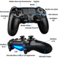 Controle Sem Fio Para Play 4 E Com Cabo Para Usar No Pc .