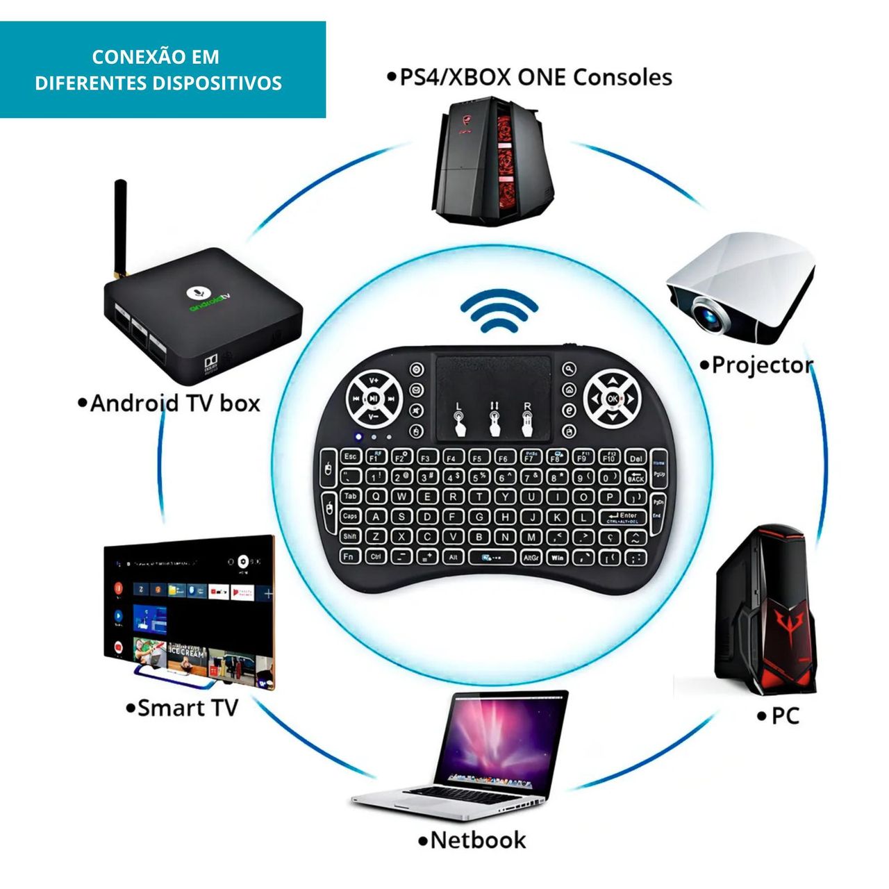 Controle Usb Receiver Smart Tv Pc Wireless Teclado Iluminado
