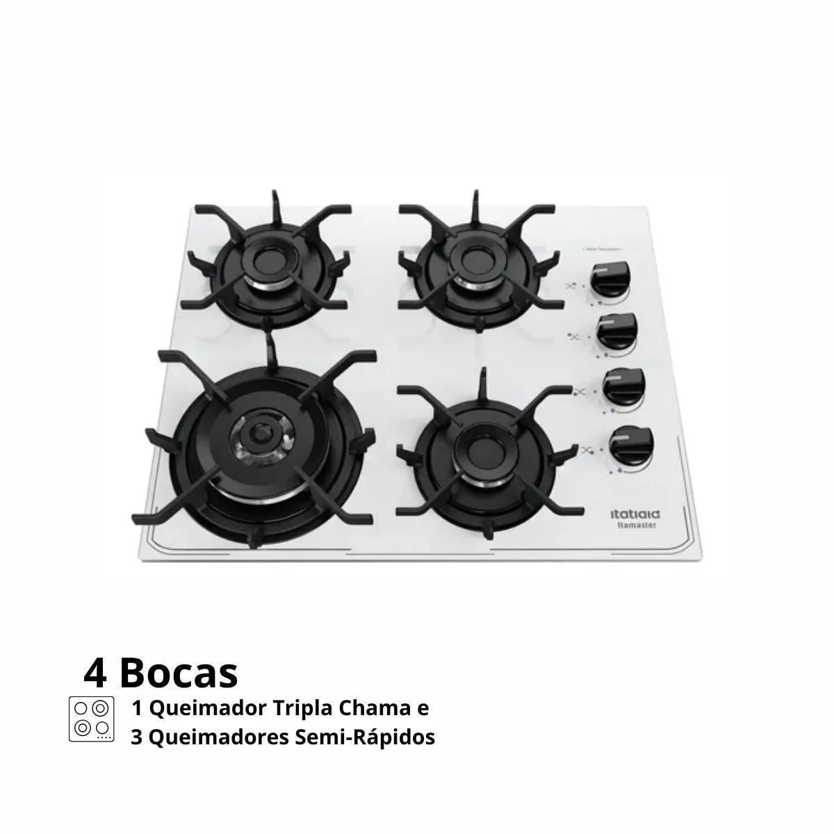 O Cooktop Itamaster 4q Tc Branco é a escolha perfeita para quem busca praticidade, design moderno e eficiência na cozinha. Com 4 bocas e funcionamento a gás, oferece maior agilidade no preparo das refeições, além de um visual sofisticado que combina com qualquer ambiente. Disponível em 127v/220v, possui acendimento super prático e mesa em vidro temperado branco, garantindo resistência e fácil limpeza. Ideal para quem deseja unir beleza e funcionalidade no dia a dia.