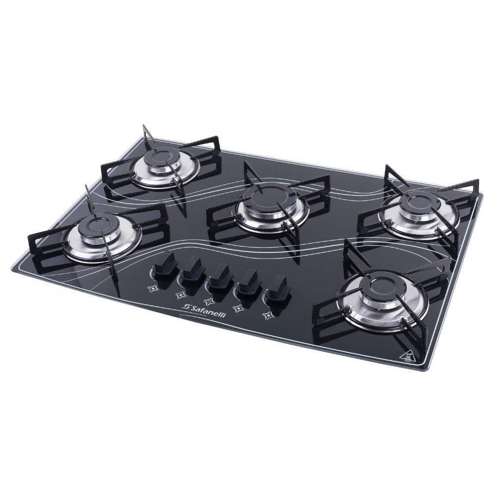 O Cooktop Safenelli vem com 5 queimadores, trempes individuais com borracha, é de fácil instalação, com angulação e encaixe perfeito na mesa, garantindo maior estabilidade das panelas sobre o produto. Para facilitar a limpeza, os botões são removíveis e a mesa selada. Além disso, acendimento super automático aumentam a praticidade no uso deste cooktop. Ideal para sua cozinha! Especificações Técnicas: Cooktop 5 queimadores Vidro temperado de 6mm Acendimento super-automático Cordão selador de vedação Trempes individuais com borracha Suporte queimador em aço inox Gás GLP instalado podendo ser convertido para GN Itens inclusos: 1 cooktop 1 manual de instruções Instruções de uso: Antes de qualquer manutenção ou limpeza, desligar o produto da corrente elétrica Lavar as trempes e espalhadores, somente com água morna e detergente Não usar produtos químicos ou abrasivos Lavar frequentemente os queimadores com água quente e detergente Lavar as partes em aço inoxidável com água e detergente, secar com pano macio. Se preferir lustrar com brilha inox ou produtos semelhantes Não usar esponja de aço ou parecidos para limpar o vidro. Usar detergente e pano macio Fazer periodicamente uma limpeza nos ignitores, para evitar dificuldades de acendimento. Deixar esfriar os espalhadores e trempes (esmaltados), antes de iniciar qualquer procedimento de limpeza, para evitar o lascamento dos mesmos (choque térmico). Dimensões: Altura: 10 cm Largura: 68 cm Profundidade: 46 cm Peso: 10 kg Garantia do fornecedor de 12 meses.