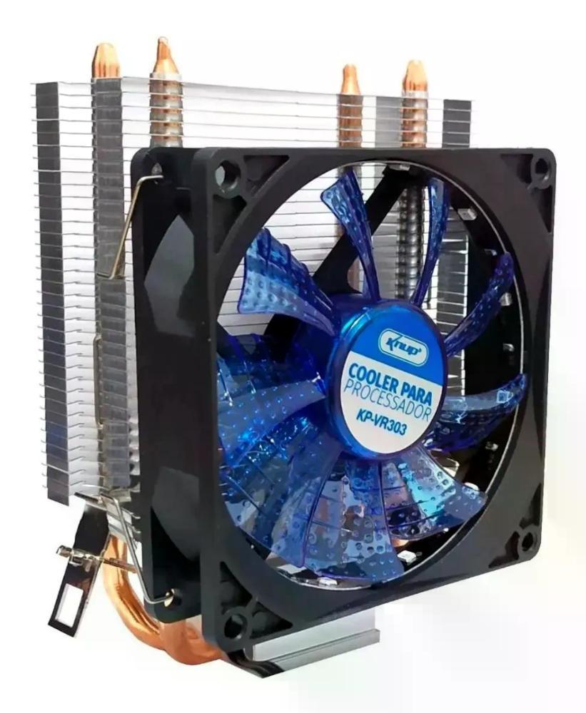 Cooler Para Processador Intel E Amd Com Led Azul Kp-vr303com Processadores Mais Potentes E Clocks Cada Vez Mais Elevados, É Natural Que Os Coolers Exerçam Uma Função Bastante Importante Em Um Computador. Além De Proteger A Peça Mais Cara Do Seu Pc, Ele Força A Circulação De Ar No Gabinete E Garante O Bom Funcionamento Dos Demais Componentes. Investir Um Pouco Mais Em Um Cooler Adequado E De Qualidade É Tão Importante Quanto Escolher Uma Placa De Vídeo Ou O Próprio Processador.especificação:lga 1151/1155/1156/1150/775(am4/fm2/fm1/fm2+/am2/am2+/am3/am3+)core I7/i5/i3/ ( Fx X8/x6/x4 )core 2 Extreme ( A10/ A8/ A6/ A4 )core 2 Quad ( Phenom Ii X6/ X4/ X3/ X2 )core 2 Duo ( Phenom X4 / X3 )pentium Dual-core ( Ahtlon Ii X4/ X3/ X2 )pentium D/pentium 4 ( Ahtlon X2 )celeron Dual-core ( Ahtlon / Ahtlon F )celeron / Celeron D ( Rysen 7/ Ryasen 5 )- Dimensões Com Dissipador: 120mm X 65mm ( A )- Dimensões Do Cooler: 120mm X 25mm ( A )- Velocidade 1500 Rpm 10%- Tipo De Rolamento: Hidráulico- Tensão De Operação: 0,2a 10%- Ruído: 22 Dba 10%- Tdp: 65w- Vida Útil: 30.000 Horas- Conector: 3 Pinos- Peso: 176gpacote Inclui:01 Cooler Para Processador Kp-vr30401 Termo De Garantia