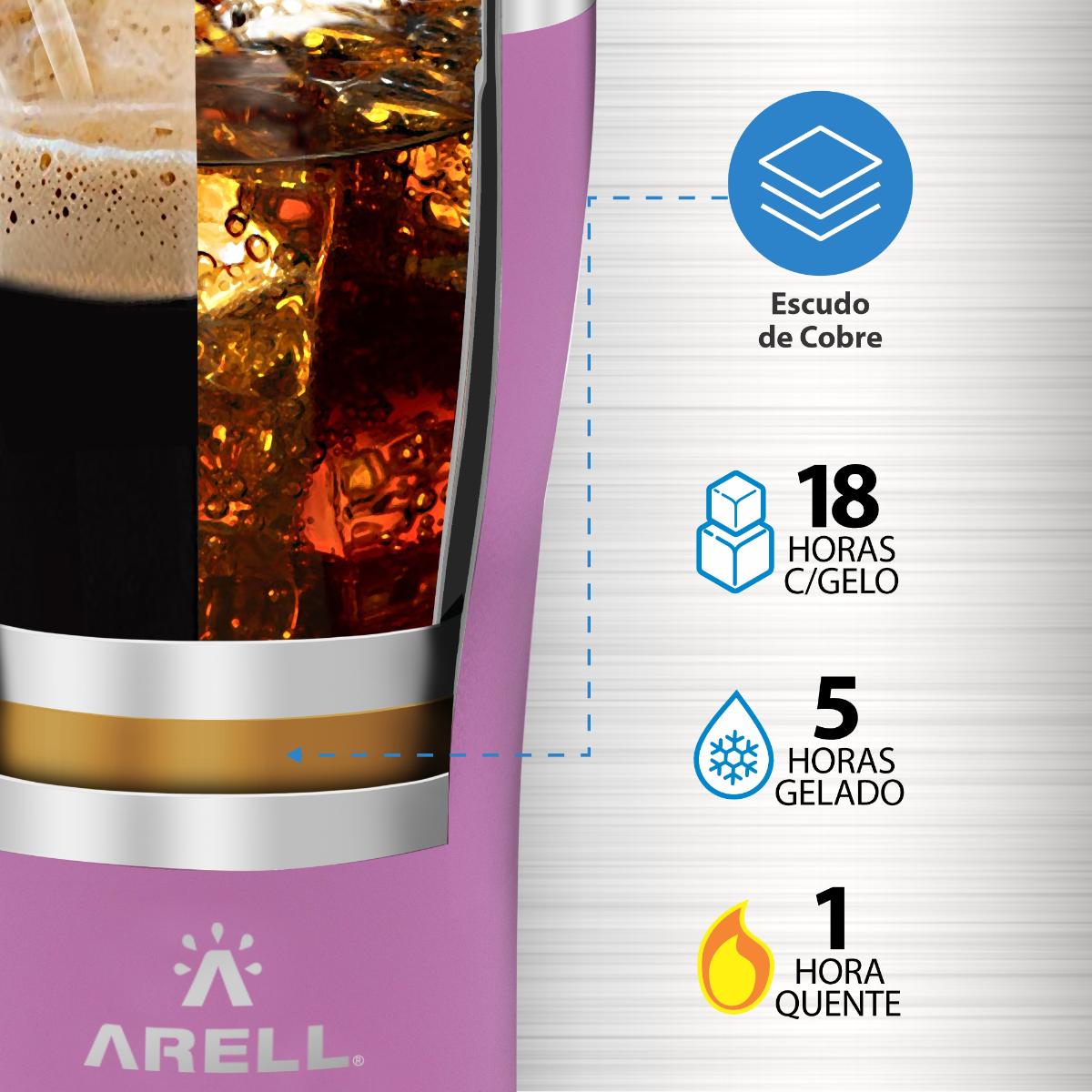 *TAMPA vendida SEPARADAMENTE TECNOLOGIA Os copos térmicos Arell são feitos com parede dupla de aço inox 304 usando a tecnologia de isolamento a vácuo. Isso significa que o espaço entre as paredes de aço inoxidável é absolutamente vazio, diminuindo a transferência de calor em torno de todo o copo. Isso faz com que a temperatura da sua bebida seja muito menos afetada pela temperatura fora do copo. Assim, você pode aproveitar a sua bebida gelada ou quente por muito mais tempo. - Até 18 horas com gelo - Até 5 horas gelado - Até 1 hora quente ESCUDO DE COBRE Os copos Arell contam também como uma camada extra de isolamento térmico. Eles possuem um revestimento de cobre na parede exterior da parte interna formando um isolamento ainda maior. O cobre reduz a troca de temperatura e isso faz com que nossos copos tenham uma eficiência de até 25% a mais do que qualquer outra marca do mercado. CORES A Arell inova o mercado Brasileiro trazendo 8 lindas cores que agradam a todos os estilos e idades. As cores desempenham um papel fundamental em nossas vidas e são capazes de afetar nossas emoções e humor de maneira que poucas outras coisas podem. Escolha a sua cor favorita e desfrute sua bebida gelada ou quente por horas. FUNDO EMBORRACHADO ANTI-RUÍDO Os nossos copos vem com uma proteção de silicone no fundo que é livre de BPA, diminui o ruído ao assentar o copo e o deslizamento em superfícies planas evitando quedas. TULIP PINT DESIGN Com o pé mais fino e a boca mais aberta, nossa Tulip Pint ajuda na formação e retenção de espuma. Um clássico para tomar Pilsen, dirige os aromas de lúpulo direto para o nariz.