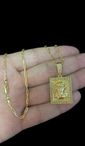 Cordão Cad Alongado 1mm + Pingente Jesus - Banhado A Ouro