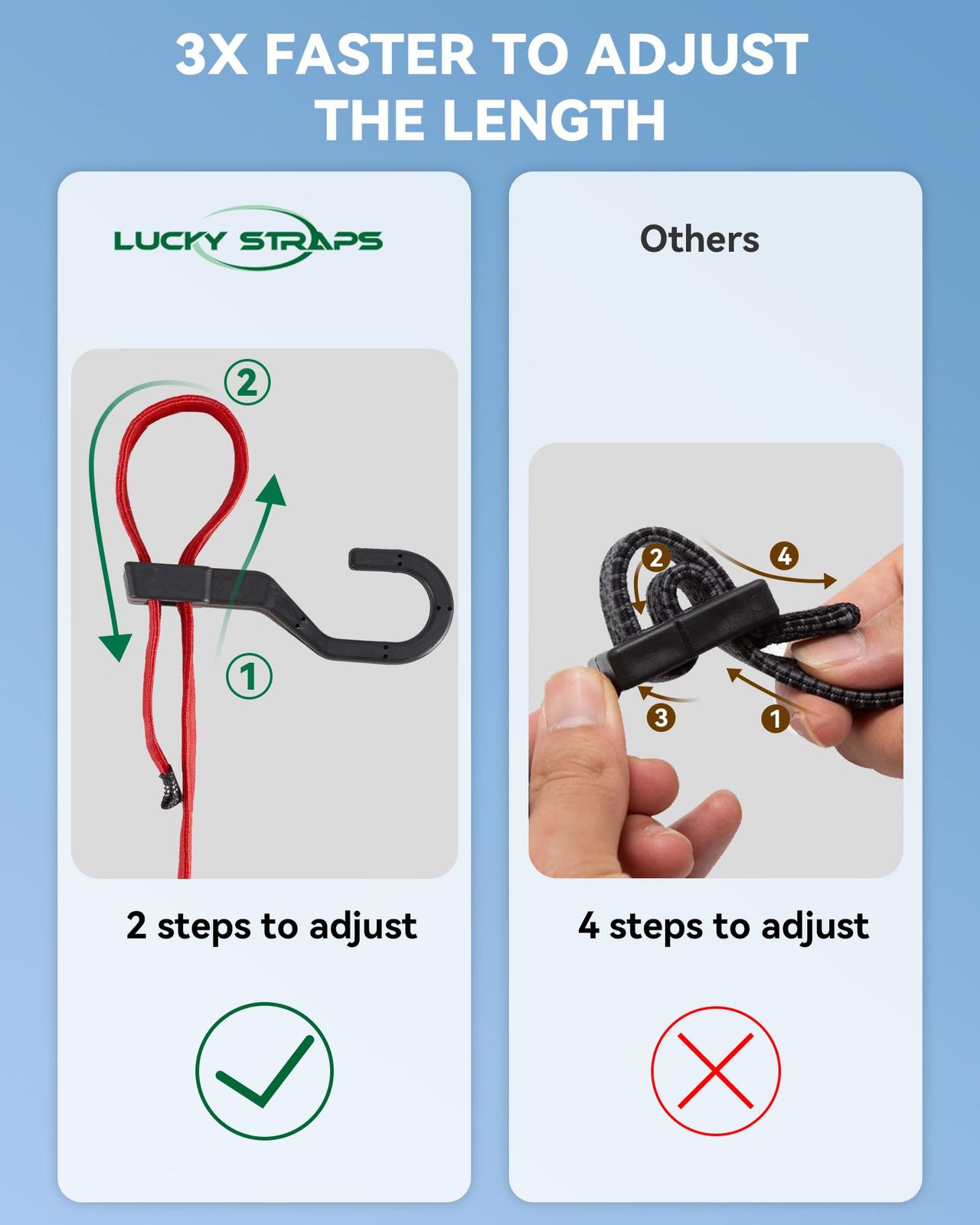 - Fácil De Ajustar De 7,8" A 36" - Flexível Para Amarrar Sua Carga. Livre Para Se Ajustar Ao Comprimento Desejado. Não Se Preocupe Mais Com O Cabo Ser Muito Longo Ou Muito Curto.