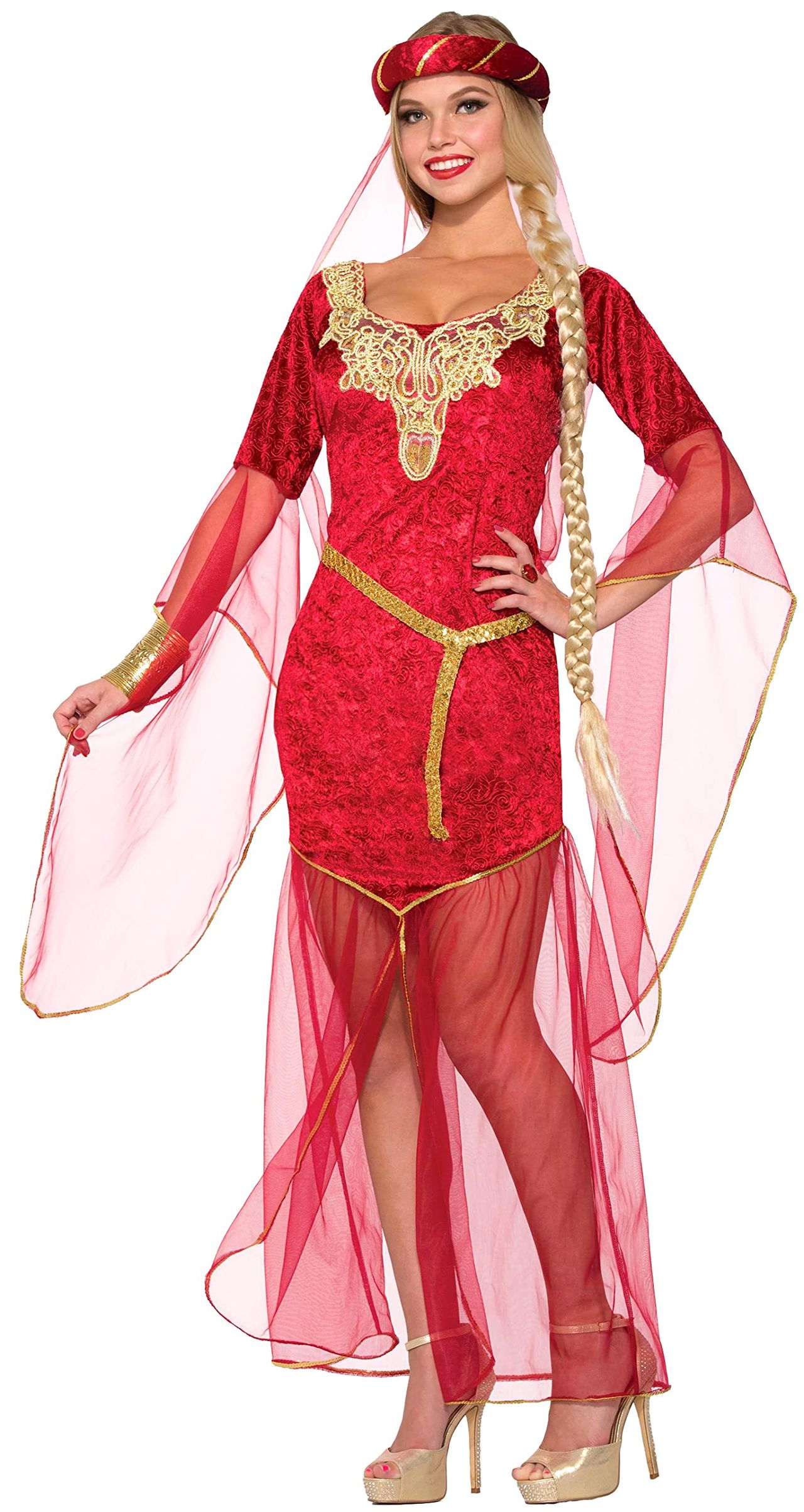 - A Fantasia Inclui Vestido Vermelho E Chapéu E Cinto Dourado