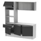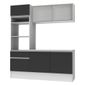 Cozinha Compacta Topazio com Balcão e Tampo Madesa..A Cozinha Compacta Topazio é uma cozinha moderna pensada nos mínimos detalhes. A cozinha é branca, no estilo americana, pequena e prática para o dia a dia. Seu aéreo em vidro agrega beleza e sofisticação..Contempla o tampo do balcão de pia que pode ser removido para a colocação de uma pia com as medidas de até 120 cm x 52 cm. Este kit é montado unido o que confere maior estabilidade e firmeza..O acabamento interno e externo é branco. As portas e a frente da gaveta são pretas. A Pintura em Poliéster Protetor consiste na aplicação de 7 camadas de proteção resistentes a álcool, água e calor. Além disso, o processo é ecológico, isento de vapores que vão para a atmosfera...Especificações Técnicas:.- Marca: Madesa.- Ref.: G20086098N.- Produto: Cozinha.- Material: MDP.- Cor: Branco/Preto.- Medidas totais são: 180 cm de largura e 210 cm de altura, profundidades de 29 cm no aéreo e 52 cm no balcão e paneleiro..- (Imagem ilustrativa: os eletros e as decorações não acompanham o produto.).- Itens inclusos: .- 1 torre com nichos para forno e micro-ondas, com 1 gaveta e 2 portas, sendo uma basculante com 1 balcão agregado de 120 cm com 2 portas.- 1 aéreo de 120 cm com portas deslizantes em vidro.- 1 tampo de madeira branco para balcão de pia de 120 cm x 52 cm.- Peso: aproximado 83 KG.- Garantia: 3 meses ..Obs: A Madesa não disponibiliza serviço de montagem. O produto segue com manual de instalação e todas as ferragens necessárias para sua montagem...