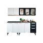 Cozinha Completa Bertolini Evidence Aço 4 Peças (2 Aéreoss + 2 Gabinete) CZ125 - C o r Branco/PretoAbaixo segue os produtos do KIT: Produto: Gabinete (Balcão) de Cozinha Bertolini Evidence 4645 Aço c/ 2 Portas e 4 Gavetas c/ Tampo 120cmDimensões(Cm): Comprimento(Profundidade): 48,30 x Largura: 120,00 x Altura: 89,20 Fabricante: Bertolini CARACTERÍSTICAS DE MÓVEIS Tipo de Estrutura do Móvel - 100% Aço Tipo de Pintura - Pintura Epóxi Tipo de Acabamento da Pintura - Semi Brilho Características de móveis - Gabinete com Pia Inox - Tampo de Fórmica de Granito Espessura do Tampo - Tampo c/ 25mm Tipo de puxador - Puxador com Proteção UV - ABS / PVC Cromado Quantidade de Prateleiras - 1 Prateleira Quantidade de Gavetas - 4 Gavetas Diferenciais da Gaveta - C o rrediças Metálicas Quantidade de Portas - 2 Portas de Abrir Garantia - 3 Meses Produto: Gabinete (Balcão) de Cozinha Bertolini Evidence 4148 Aço c/ 2 Portas c/ Tampo 80cmDimensões(Cm): Comprimento(Profundidade): 48,30 x Largura: 80,00 x Altura: 89,20 Fabricante: Bertolini CARACTERÍSTICAS DE MÓVEIS Tipo de Estrutura do Móvel - 100% Aço Tipo de Pintura - Pintura Epóxi Tipo de Acabamento da Pintura - Semi Brilho Características de móveis - Gabinete com Tampo - Tampo de Fórmica de Granito Espessura do Tampo - Tampo c/ 25mm Tipo de puxador - Puxador com Proteção UV - ABS / PVC Cromado Quantidade de Prateleiras - 1 Prateleira Quantidade de Portas - 2 Portas de Abrir Garantia - 3 Meses Produto: Armário de Cozinha Bertolini Aéreo Evidence 4034 Aço c/ 3 Portas c/ Vidro 120cmDimensões(Cm): Comprimento(Profundidade): 28,30 x Largura: 120,00 x Altura: 52,50 Fabricante: Bertolini CARACTERÍSTICAS DE MÓVEIS Tipo de Estrutura do Móvel - 100% Aço Tipo de Pintura - Pintura Epóxi Tipo de Acabamento da Pintura - Semi Brilho Características de móveis - Armário Aéreo - Armário Triplo Tipo de puxador - Puxador com Proteção UV - ABS / PVC Cromado Quantidade de Prateleiras - 1 Prateleira Quantidade de Portas - 3 Portas de Abrir Garantia - 3 Meses Produto: Armário de Cozinha Bertolini Aéreo Evidence 4029 Aço c/ 2 Portas 80cmDimensões(Cm): Comprimento(Profundidade): 28,30 x Largura: 80,00 x Altura: 52,50 Fabricante: Bertolini CARACTERÍSTICAS DE MÓVEIS Tipo de Estrutura do Móvel - 100% Aço Tipo de Pintura - Pintura Epóxi Tipo de Acabamento da Pintura - Semi Brilho Características de móveis - Armário Aéreo - Armário Duplo Tipo de puxador - Puxador com Proteção UV - ABS / PVC Cromado Quantidade de Portas - 2 Portas de Abrir Garantia - 3 Meses Não nos responsabilizamos pela montagem/instalação dos produtos. Todas as informações divulgadas são de responsabilidade exclusiva do fabricante/fornecedor. Imagens Meramente Ilustrativas. Verifique com os fabricantes do produto e de seus componentes eventuais limitações à utilização de todos os recursos e funcionalidades.