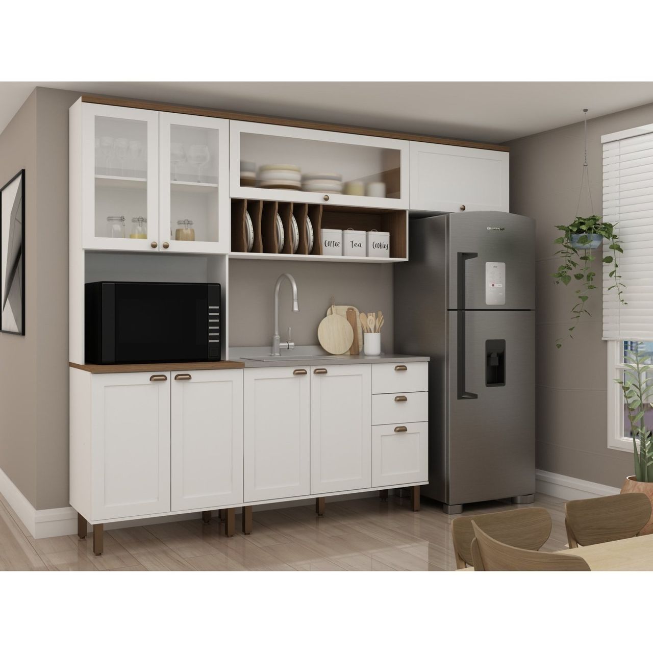 Cozinha Completa Com Cristaleira Forno 100% Mdf Iluminata Branco.