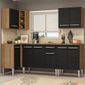 Cozinha Completa de Canto Emilly Open Madesa Cor: Preto Garantia: 3 Meses Contra Defeitos de Fabricação Dimensões - Altura: 186 Cm Dimensões - Largura: 293 Cm Dimensões - Profundidade: 44 Cm Produto: Cozinha Marca: Madesa Peso Aproximado: 87 Kg Material: Mdp Rbn: Móveis/móveis de Cozinha Material Para Filtro: Mdp Estado de Origem: Rs Tempo de Entrega do Fornecedor (dias): 1 Conteúdo da Embalagem: N/i Instruções/cuidados: N/i Pensada para ser uma solução completa, a Cozinha Emilly Open de Canto Reto contempla três balcões, dois armários aéreos e uma adega acoplada, todos com ótimo aproveitamento dos espaços. Assim, fica mais fácil organizar os utensílios, louças e eletros. Além disso, todos os módulos são separados, possibilitando a montagem conforme a necessidade do seu ambiente. A cozinha é fabricada com materiais de qualidade, como puxadores com detalhe em alumínio e corrediças e dobradiças metálicas. Os pés são em PVC, pensados para facilitar a limpeza e reguláveis para nivelar pequenas imperfeições no piso. Por fim, todos os balcões acompanham tampo em MDP. O acabamento da estrutura é no padrão amadeirado Rustic e as portas e frente são pretas. As partes internas das costas e da gaveta são brancas. O processo é feito em Pintura Poliéster ecológica com 7 camadas de proteção, que oferecem resistência contra os efeitos da água e do calor. Os armários aéreos e o paneleiro precisam ser fixados na parede. Medidas totais: 186 cm de altura x 293 cm de largura x 44 cm profundidade nos balcões e 27 cm nos aéreos. Itens inclusos: - Um (1) Armário aéreo de canto com uma (1) porta e uma (1) adega acoplada - Um (1) Balcão de canto com uma (1) portas e tampo - Um (1) Balcão com três (3) portas, uma (1) gaveta e tampo - Um (1) Armário aéreo com duas (2) portas - Um (1) Balcão om duas (2) portas e tampo Código do produto: GCEM2930017K Marca: MADESA Garantia: Garantia de 3 meses contra defeito de fabricação