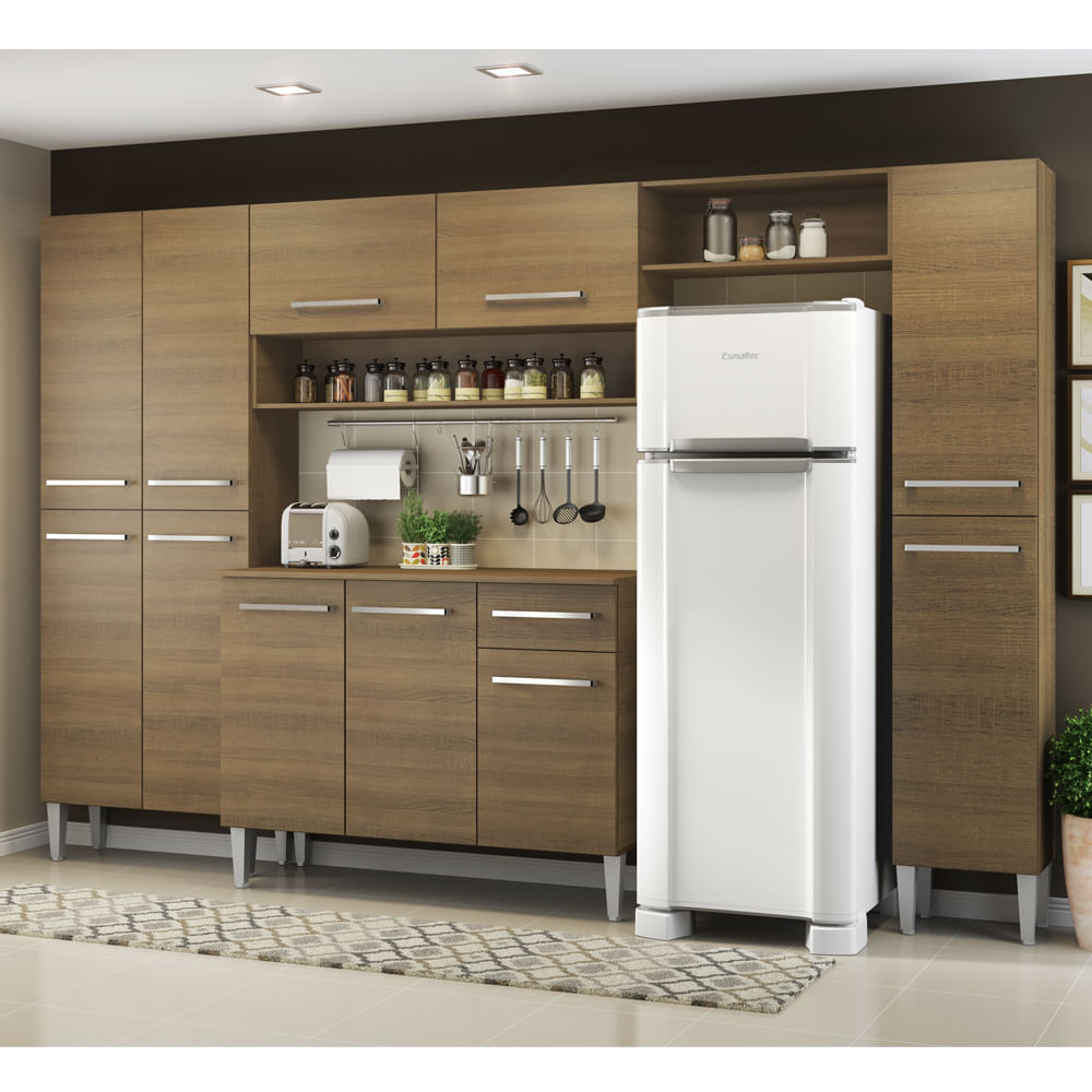 A Cozinha Emilly se destaca por ser uma solução completa e ideal para o dia-a-dia. Seu espaço interno é bem distribuído e as cores branco e amadeirado combinam com ambientes modernos ou clássicos.