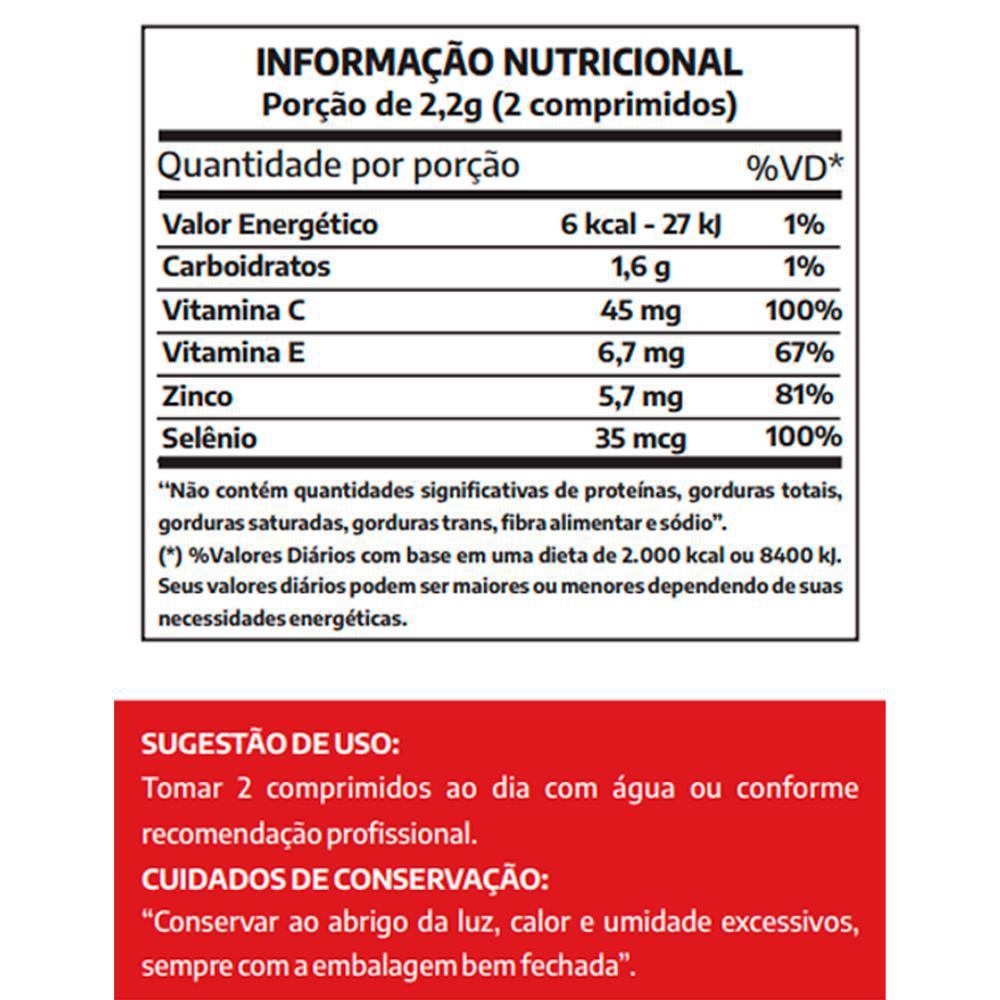 Cranberry Desidratado Em Pó, Ácido Ascórbico (vitamina C), Dlalfa Tocoferol (vitamina E), Óxido De Zinco (zinco), L Selenometionina (selênio), Antiumectantes Dióxido De Silício E Estearato De Magnésio E Estabilizante Polivinilpirrolidona.