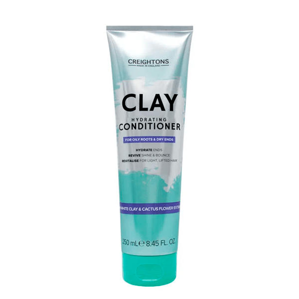 Com Creightons Clay você dará adeus à oleosidade! ATUAÇÃO: Sua fórmula possui Argila branca e flor de cactos, que purificam e equilibram a oleosidade da raiz, além de recuperar o brilho e revitalizar os fios. MODO DE USO: Após lavar com o shampoo, aplique o condicionador nos cabelos molhados, distribuindo-o do comprimento às pontas. Massageie por 2 minutos e enxágue bem. FINALIDADE Cabelos limpos, brilhosos e raiz livre de oleosidade