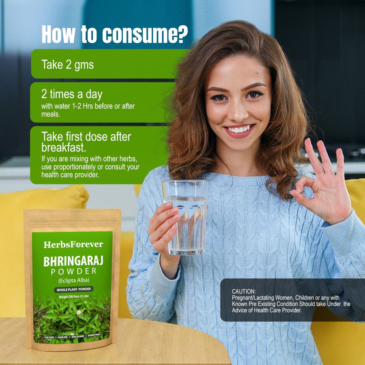 - O Pó Bhringraj Ajuda Na Função Saudável Do Fígado. Como O Fígado É O Controlador Do Metabolismo Do Corpo. Assim, Melhora O Metabolismo Do Fígado E Fornece Força Ao Corpo Rejuvenescendo Cada Parte Do Corpo. Ajuda Na Digestão De "ama" (alimentos Não Digeridos). O Pó Bhringraj Ajuda Na Purificação Do Sangue. Ajuda A Promover Uma Aparência Brilhante. Pode Ser Tomado Por Via Oral Ou Aplicado Na Pele Diretamente Na Forma De Uma Pasta.
