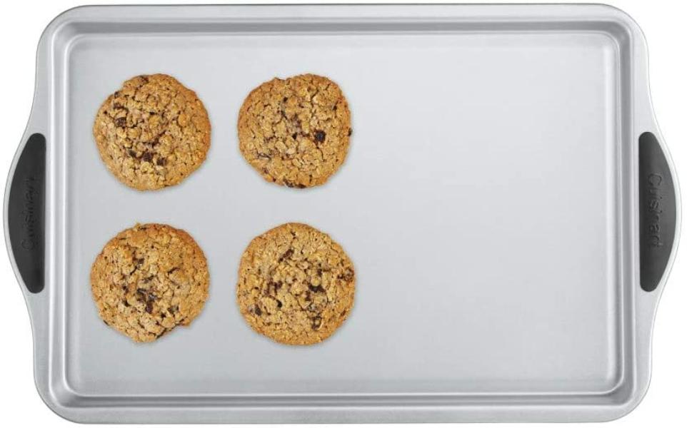 Design elegante e alças de silicone de fácil aderência trazem estilo e conveniência para o bakeware antiaderente de qualidade da Cuisinart. Contornadas para luvas de forno padrão, duas aderências laterais em cada pedaço de bakeware fazem a remoção de deliciosos doces e pães caseiros da ove Características: Silicone Easy-Grip Handles| Construção de aço de bitola pesada para aquecimento uniforme| Interior e exterior antiaderente para fácil liberação e limpeza| Bordas roladas grossas previnem warping| Lava-louças seguras| Garantia de vida limitada