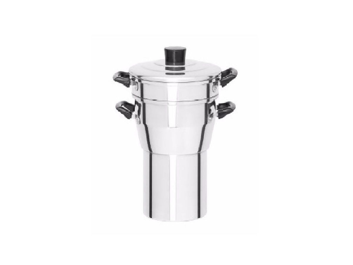 Cuscuzeiro de Alumínio Simples com Peneira Interna e TampaComposto por caneco de alumínio reforçado para ferver água com alça de baquelite e com tampa, bem como peneira embutida interna com suporte pegada.Qualidade GarantidaMaior DurabilidadeUm Excelentes ProdutosEspecificações técnicas:Altura: 20cmDiâmetro: 18cmDiâmetro da peneira: 15cmLitragem: 2,9LtPeso: 0,300kgItens inclusos:01 Cuscuzeiro de Alumínio Simples com Peneira Interna e Tampa