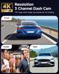 - 【câmera De Painel Wifi De 3 Canais】com Um Sensor G, 4 Luzes Ir E Tecnologia Wdr, A Melhor Visão Noturna É Fornecida Pela Câmera Dash 4k. Usa Ampla Abertura F/2.0 Com Um Total De 6 Camadas De Tecnologia De Lentes Ópticas, Permitindo Que A Câmera Do Carro Mostre Boa Precisão De Cor E Capture Claramente Detalhes Importantes Dia Ou Noite.