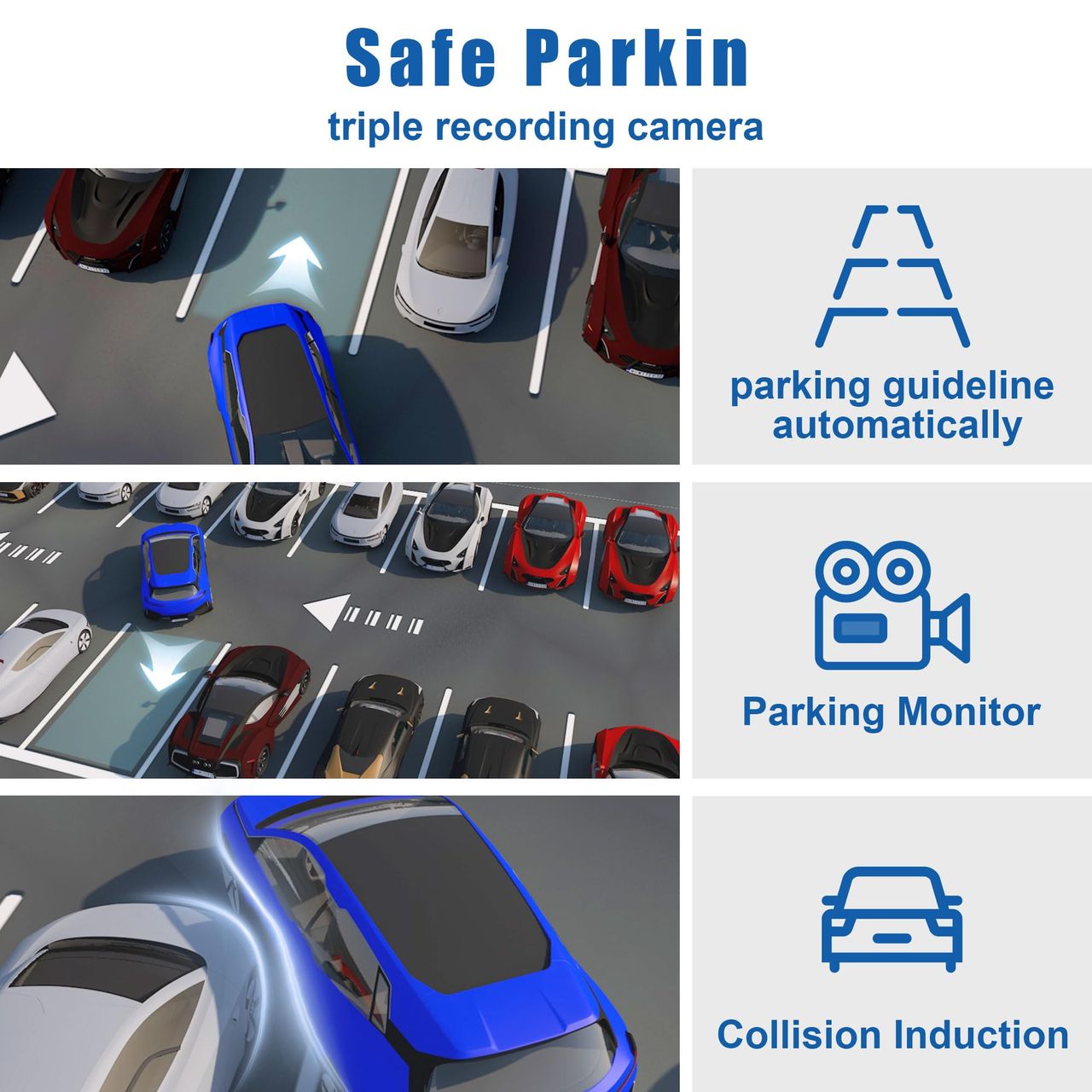 - ✔【modo De Estacionamento 24 Horas】com O Modo De Estacionamento Com Gravação De Baixa Taxa De Bits, A Câmera Do Painel Continua Gravando Continuamente E Diminui A Qualidade Do Vídeo Para Maximizar A Quantidade De Gravação. Enquanto O Modo De Estacionamento Com Detecção De Movimento Ou Detecção De Colisão Permite Que A Câmera Inicie Automaticamente A Gravação Quando Acionada Por Um Evento De Movimento Ou Colisão. A Câmera Do Painel De 3 Canais Deve Estar Sempre Conectada Ao Kit De Fio Rígido Ou A Uma Bateria Externa.