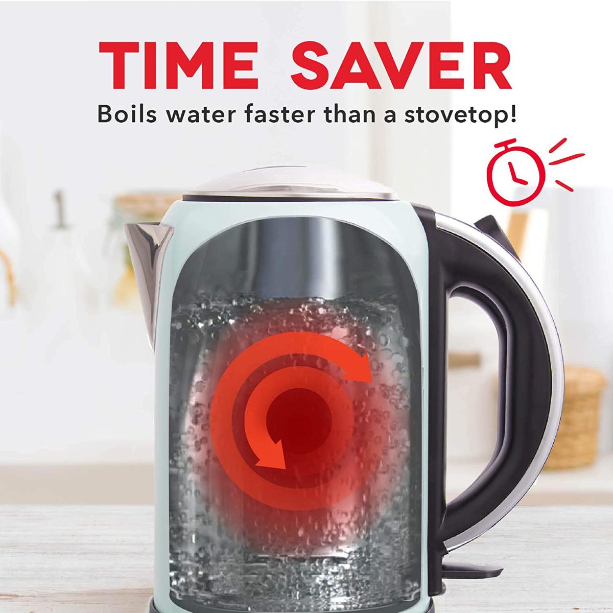 Pegue a melhor cerveja toda vez com o Dash Rapid Kettle. Com capacidade de 1,7L e tecnologia de fervura rápida, você ganha chá perfeitamente aquecido, cacau, caldo, sopa, aveia e muito mais em apenas alguns minutos. O design elegante e moderno da chaleira ganha seu lugar na sua bancada. Desprocesse sua comida hoje com o livro de receitas que está incluído na compra, e tenha acesso ao nosso banco de dados de milhares de receitas gratuitamente!
