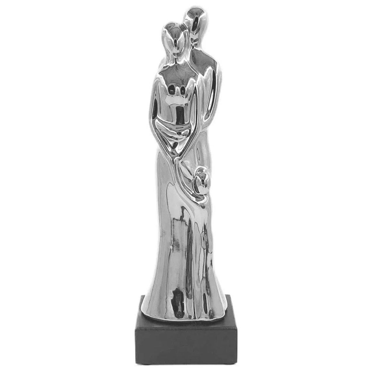 Decoração Estatueta Família Prata Em Cerâmica