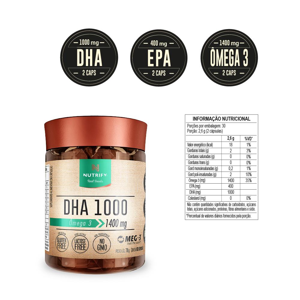 Dha 1000entre Alta Concentração E Fonte Sustentável, Fique Com Os Dois.os Benefícios Da Suplementação De Ômega 3 São Amplamente Respaldados Pela Ciência.dha 1000 Nutrifyé Ultraconcentrado Em Dha, O Ácido Graxo Predominante No Cérebro. O Óleo De Peixe Utilizado Em Sua Produção É Omeg-3®, Originado De Pescas Regulamentadas Que Protegem As Reservas Naturais, Garantindo Alta Qualidade, Concentração, Pureza E Sustentabilidade.além Da Tecnologia Inovadora De Microencapsulação Do Meg-3® Que Reduz Significativamente O Retrogosto De Peixe Que Algumas Pessoas Sentem Ao Suplementar Ômega 3. Mais Conforto E Segurança Para Você.não Contém Quantidades Significativas De Carboidratos, Açúcares Totais, Açúcares Adicionados, Proteínas, Fibras Alimentares E Sódio*percentual De Valores Diários Fornecidos Pela Porção.ingredientesóleo De Peixe, Água Purificada, Geleificante Gelatina E Umectante Glicerina. Alérgicos: Contém Derivados De Peixe E Soja. Não Contém Glúten. Pessoas Alérgicas A Peixes E Crustáceos Devem Evitar O Consumo Deste Produto.