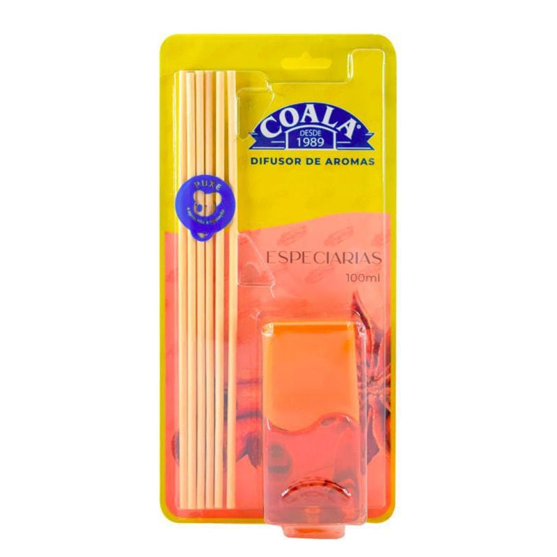 Difusor de aromas coala especiarias 100ml . Sobre. Os aromas queridinhos do brasil agora na versão difusores de aromas, com fragrâncias especiais para deixar seu ambiente ainda mais perfumado e aproveitar momentos que marcam.Informações do produto. Importante manter as varetas umedecidas para que haja evaporação do perfume no ambiente caso queira interromper o uso, basta tirar as varetas e fechar o frasco..Modo de usar. 1 - retire o produto da embalagem.. 2 - desencaixe a tampa externa e abra o frasco retirando a tampa interna que veda o produto.. 3 - encaixe novamente a tampa externa no frasco.. 4 - introduza as varetas no frasco para que absorvam o perfume.. 5 - após 2 horas troque as varetas de lado. marca:Casa Limpa