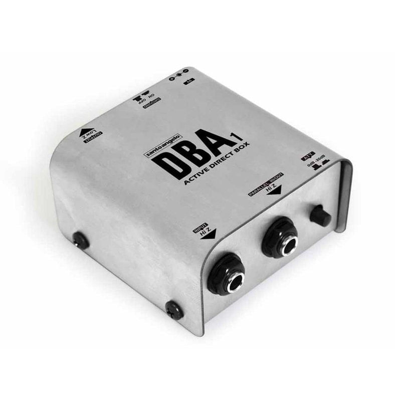 Direct Box Ativo Santo Ângelo Dba1..Direct box ativo “dba1” diferente do modelo passivo o “dba1” utiliza um transistor para fazer o balanceamento do sinal, por este motivo é necessário alimentação externa 9v ou utilizar o phantom power..Cor: prata.Marca: Santo Angelo.Garantia: 6 meses