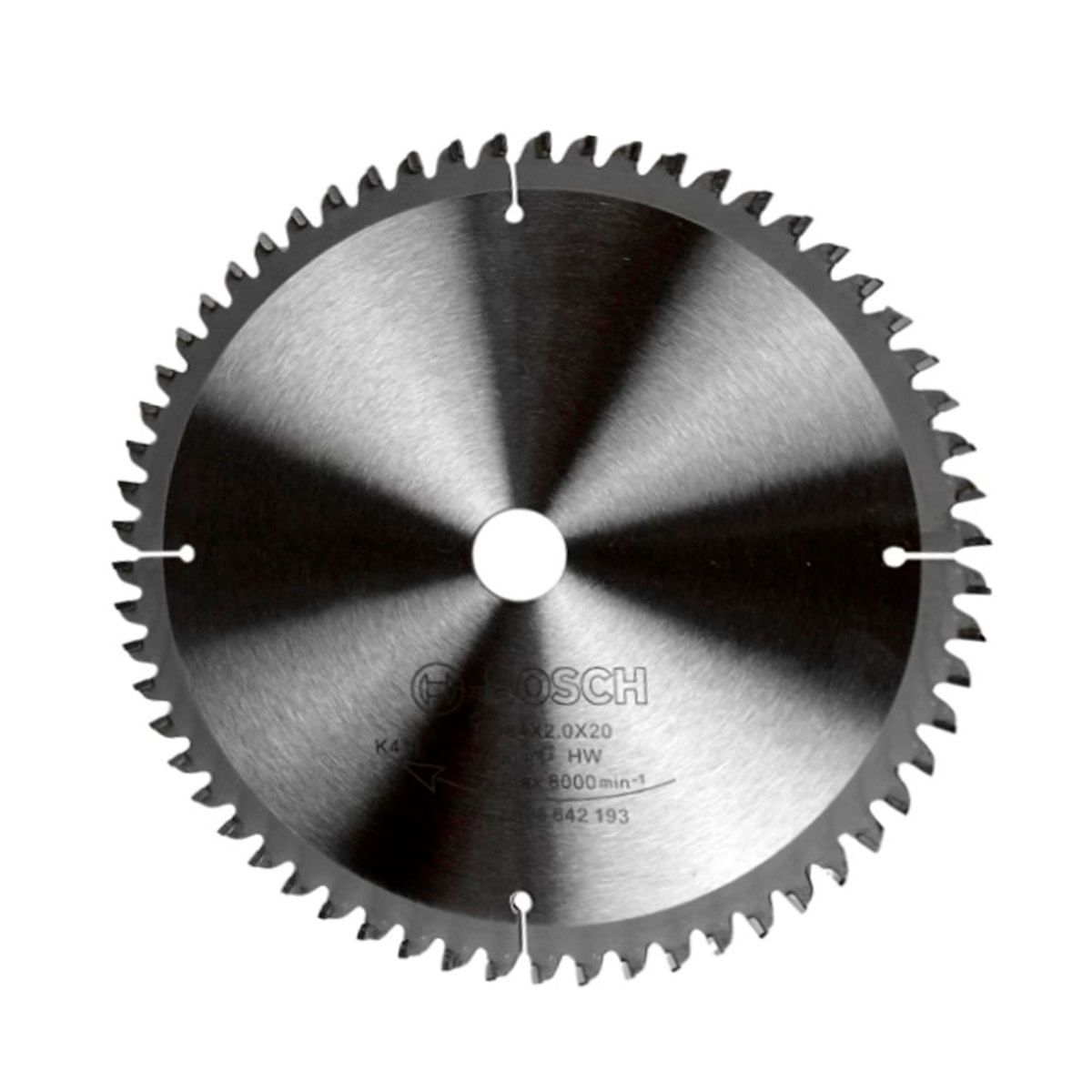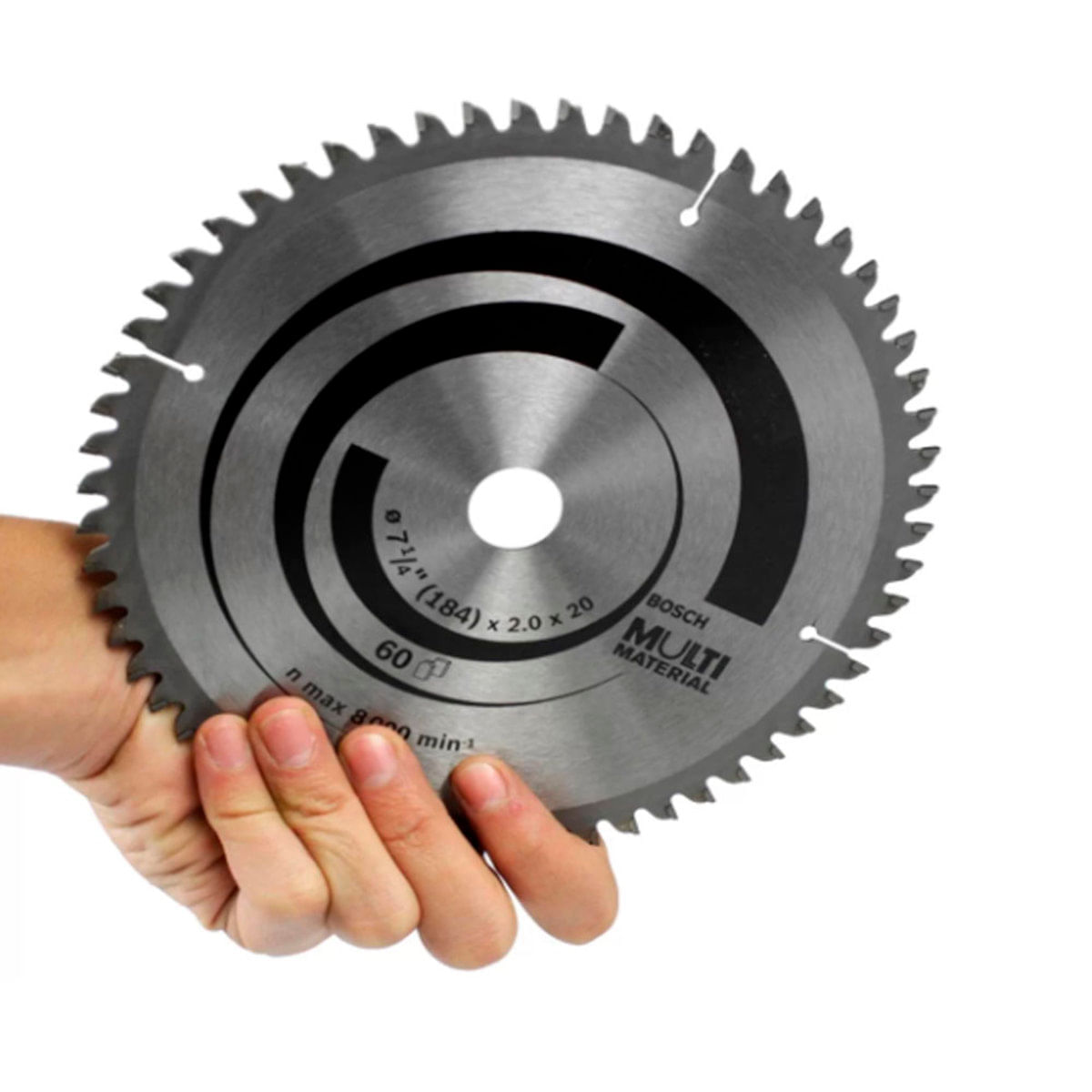 Disco de serra circular 7.1/4" Bosch Multi material 60 dentes. .O Disco de serra circular Bosch Multi material é o modelo ideal para sua Serra Circular. Possui 60 dentes que dão o corte perfeito a sua peça. Compre já o seu!. .Características.Marca: Bosch.Referência: 2 608 642 193. .Especificações Técnicas.Dentes de metal duro, planos e trapezoidais com ângulo negativo.Base do disco com corpo em aço endurecido e temperado.Corte fino em madeira dura.Corte muito fino em madeira fina e material composto.Corte fino em plástico e metais não ferrosos.Corte muito fino em plástico e metais não ferrosos.Diâmetro externo: 7-1/4¿ (184mm).Diâmetro do furo: 20mm.Dentes: 60. .Aplicação.é ideal para cortar madeira, metais não ferrosos e plástico. .Itens Inclusos.01 Disco de serra circular 7.1/4" Bosch Multi material 60 dentes. .Dimensões.Dimensões (C x A x L): 20 x 20 x 2 cm.Peso: 1 kg. .Garantia 03 meses