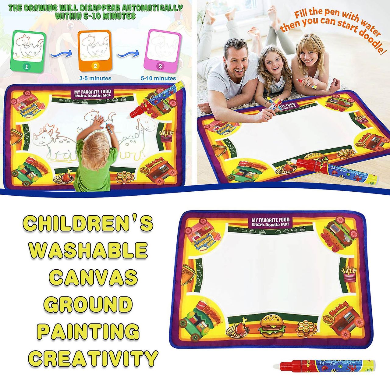 Tapete De Desenho Mágico: Reutilizável — Encha A Caneta Mágica Com Água Limpa E Desenhe No Tapete De Desenho Mágico. Após 5 A 10 Minutos, Ele Desaparece Magicamente (dependendo Da Temperatura E Do Fluxo De Ar) E As Crianças Podem Pintar No Tapete De Desenho Repetidamente.